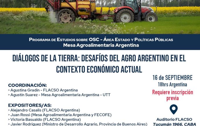 Conversatorio Diálogos de la tierra: desafíos del agro argentino en el contexto económico actual 16 de septiembre, 18 hrs (Argentina). Auditorio FLACSO Argentina - Transmisión Zoom y Youtube. Requiere inscripción previa. En [...]