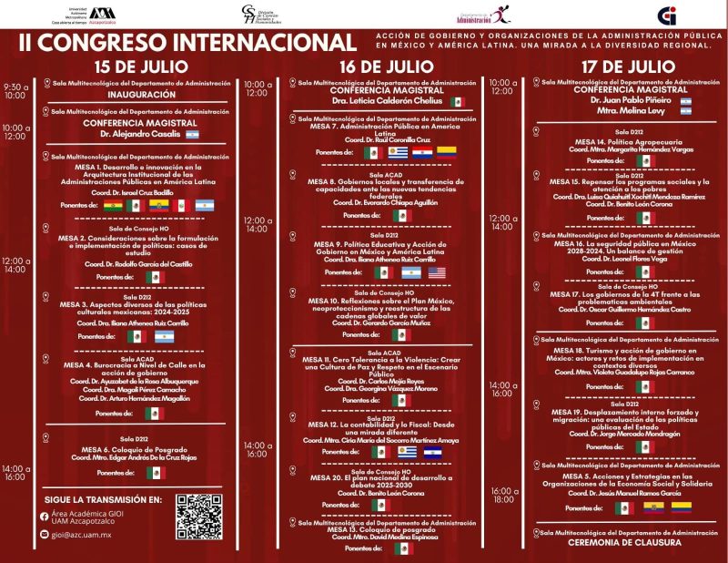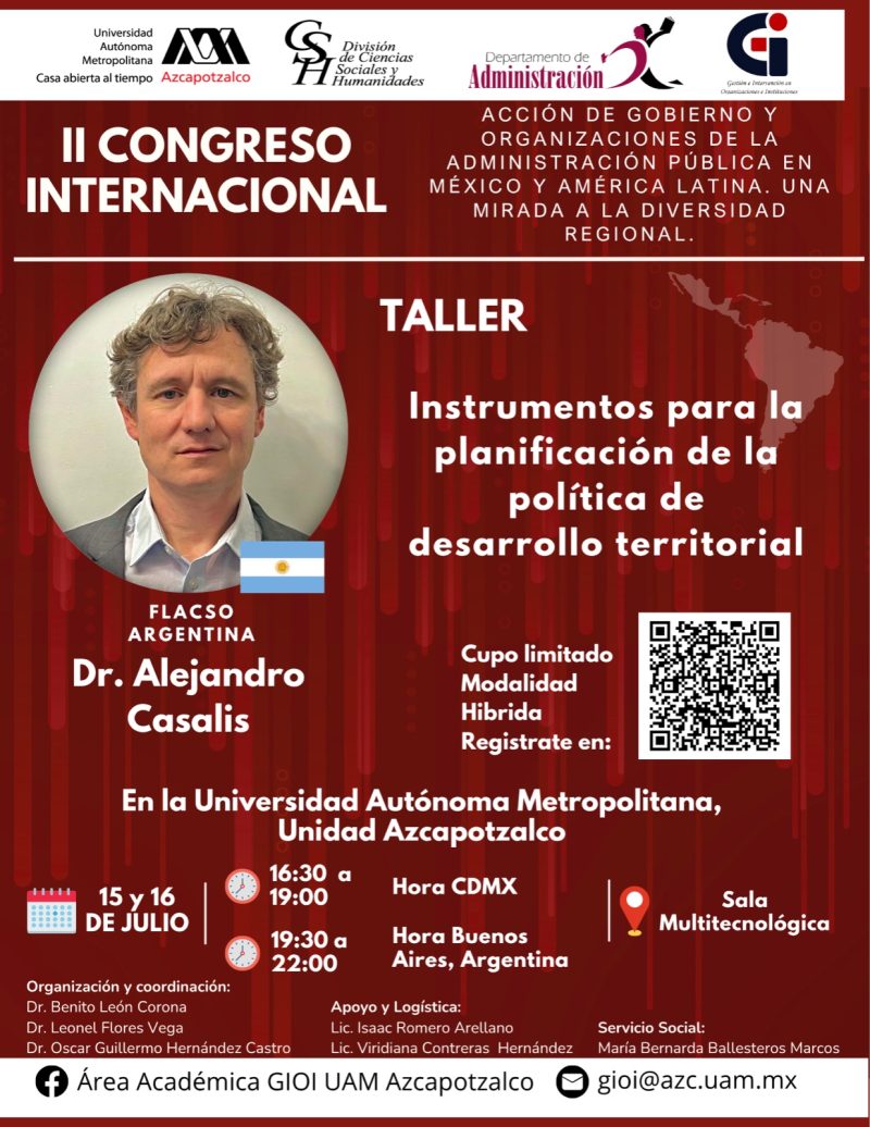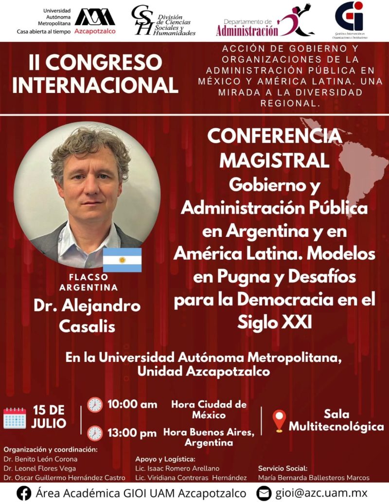 El coordinador del Área, Alejandro Casalis, participará del II Congreso Internacional del Departamento de Administración Azcapotzalco de la Universidad Autónoma Metropolitana titulado Acción de gobierno y organizaciones de la Administración Pública en México y América Latina. Una mirada a la diversidad regional.