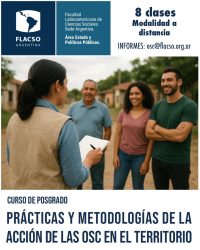 El curso de posgrado “Prácticas y Metodologías de la acción de las OSC en el territorio” (a distancia), forma parte del Diploma Superior en “Organizaciones de la sociedad civil” (a distancia).