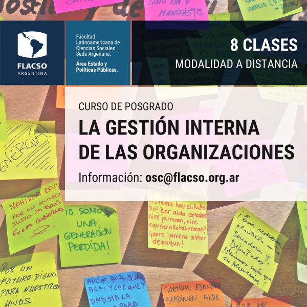 El curso de posgrado La gestión interna de las organizaciones, forma parte del Diploma Superior en “Organizaciones de la sociedad civil” (a distancia).
